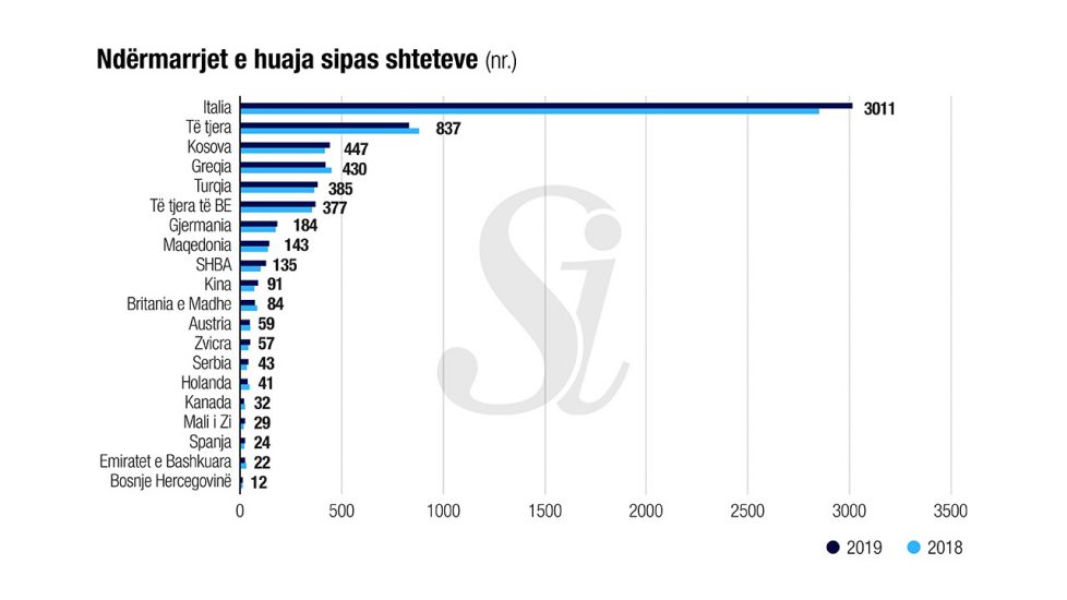 Italia është shteti kryesor ng ai cili ka më shumë biznese të huaja, ose 47% e totalit. Ndërmarrjet nga ky shtet shënuan dhe rritjen më të madhe në numër në 2019-n, ose 158 më shumë (+5.6%).