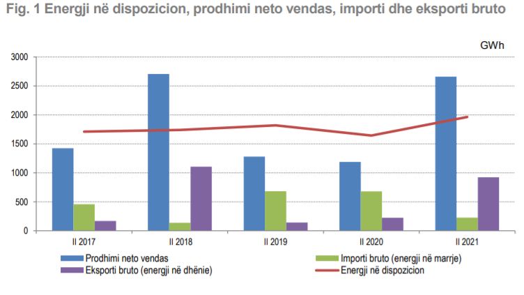 Ndërkohë, eksporti i energjisë u rrit me 24.2% , nga 224 GWh në tremujorin e dytë 2020, në 924 GWh gjatë tremujorit të dytë të 2021-shit.