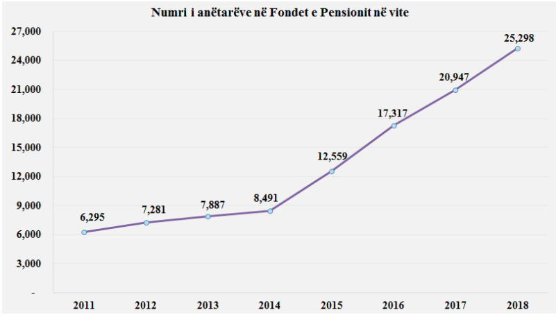 Rritja e numrit të anëtarëve është trefishuar në krahasim me fillimet në vitin 2011. Por rritja më e ndjeshme shihet pas vitit 2014, pothuajse i trefishuar. Kjo tendencë rritje e pjesëmarrjes në fondet e pensioneve tregon një ndërgjegjësim më të lartë të publikut për potencialin që ofron ky treg.
