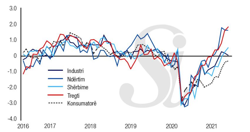 Besimi në sektorin e industrisë shënoi rënie, kur një muaj më parë po ecte në ritme pozitive, ndërsa besimi në sektorin e ndërtimit mbeti në të njëjtin nivel.