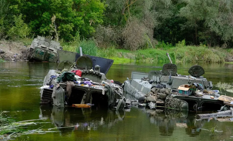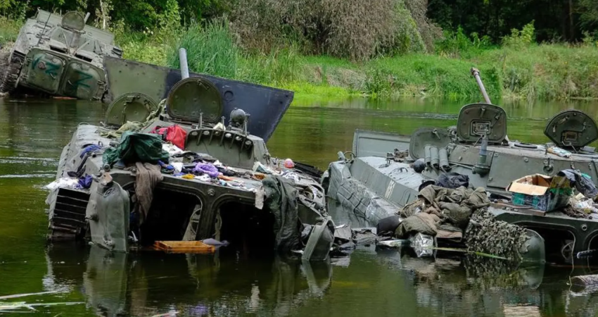 Pajisjet ushtarake ruse janë braktisur nga ushtarët rusë pasi Ukraina arriti të merrte një pjesë të territorit të tyre.