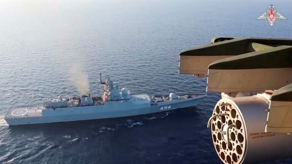 Ministria ruse e Mbrojtjes tha se ekuipazhet e fregatave hodhën raketa hipersonike kundër anijes Zircon (Tsirkon), ndërsa një nëndetëse ruse lëshoi një raketë lundrimi Kalibr, një tjetër armë e aftë për të mbajtur një kokë bërthamore.