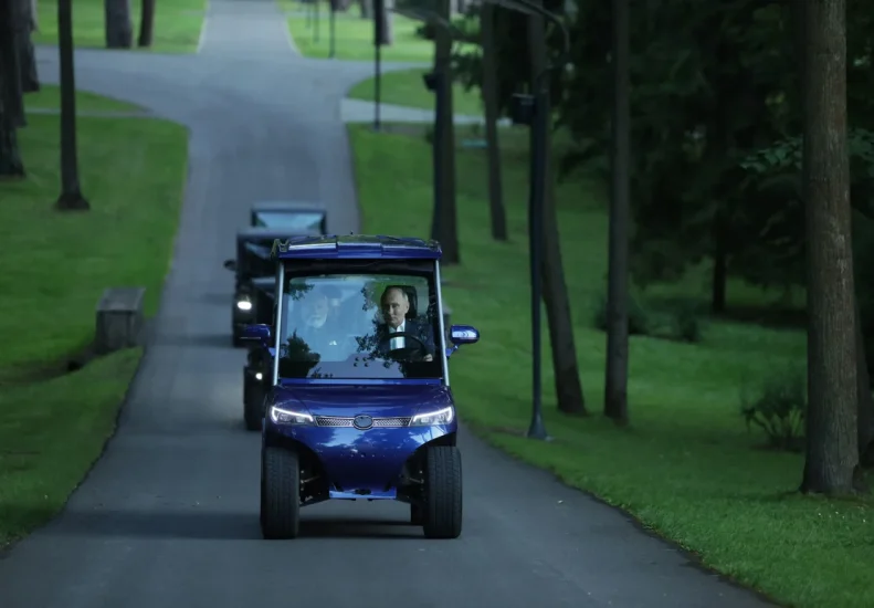 Nga Gazeta ‘Si’-Xhiroja e Vladimir Putinit me kryeministrin indian Narendra Modi me një mini makinë elektrike në rezidencën e tij tregon se sa të dashur janë bërë të dy udhëheqësit.