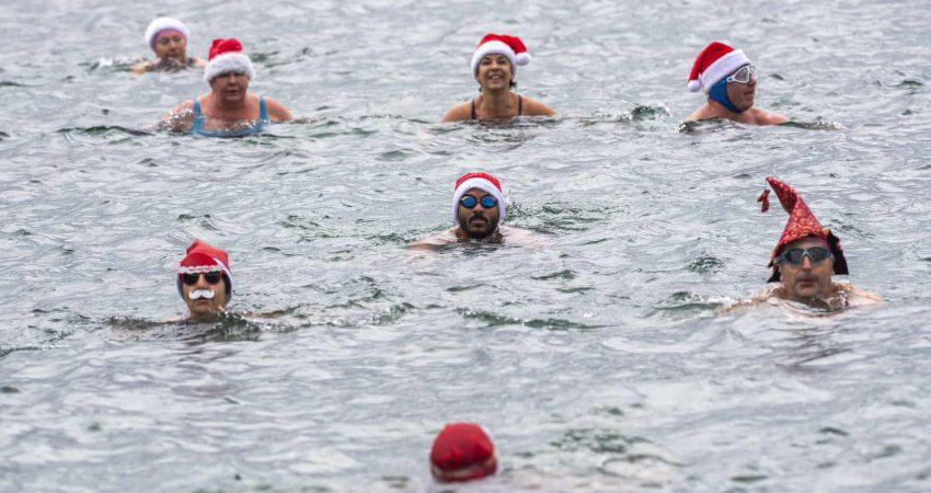 Ja dhe një festë ndryshe e Krishtlindjes. Duke notuar në liqenin Lema në Gjenevë, Zvicër… Foto EPA