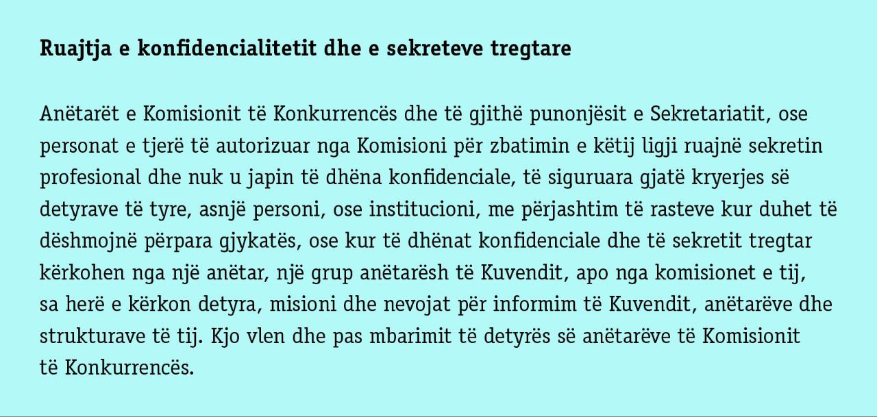 Shalsi iu referua nenit 30 të ligjit për konkurrencën, që lidhet me sekretin profesional. Në këtë ligj, anëtarëve të Autoritetit të Konkurrencës u ndalohet dhënia e të dhënave konfidenciale edhe për institucionet e tjera, përfshirë këtu Kuvendin. Përjashtim bën vetëm prokuroria dhe gjykatat.