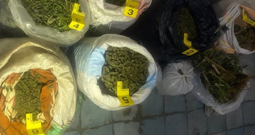 Gjithashtu, gjatë kontrollit janë gjetur dhe janë sekuestruar në cilësinë e provës materiale, 7 thasë të mbushur me lëndë të dyshuar narkotike kanabis, me peshë totale rreth 58 kilogramë.