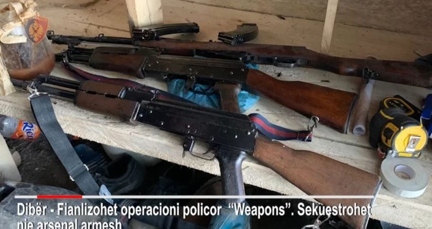 Gazeta Si – Një arsenal armësh është sekuestruar në Dibër gjatë një aksioni të koduar “Weapons”. Policia thotë se u arrestuan D.D., 68 vjeç dhe djali i tij PD., 38 vjeç, në banesën e të cilëve në fshatin Shullan u gjetën 2 kallashnikovë, një pushkë, një armë gjahu, tritol, 200 metra fitil zjarrpërcjellës, 73 kapsolla detonatore, 715 fishekë dhe 5 krehëra arme.