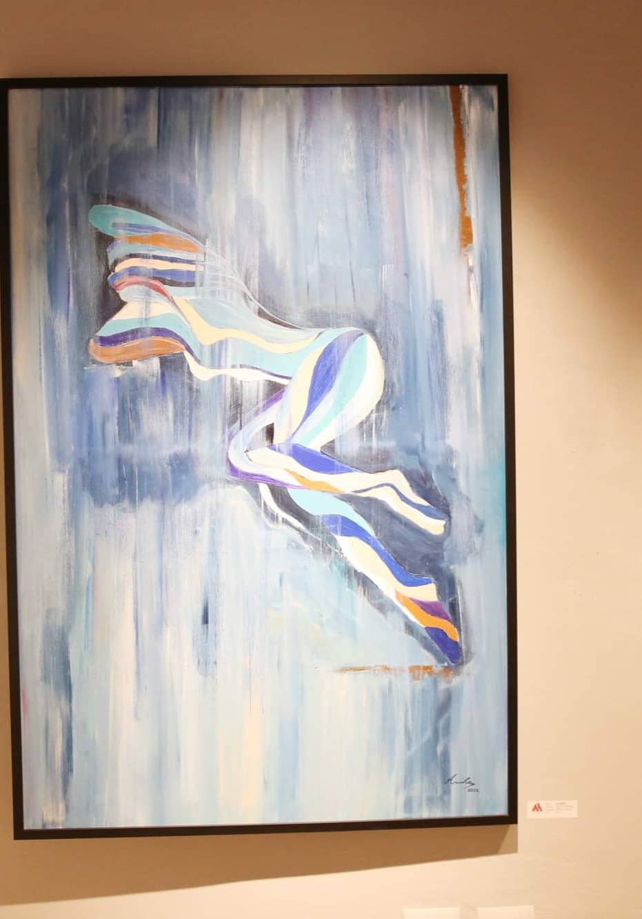 Janë 20 punime që vijnë të përmasave të ndryshme, janë punuar me akrilik, në pëlhurë, ku duket sikur gratë krijojnë edhe dialogë mes tyre dhe vijnë më së shumti në një ndërthurje ngjyrash mes të kuqes dhe blusë.