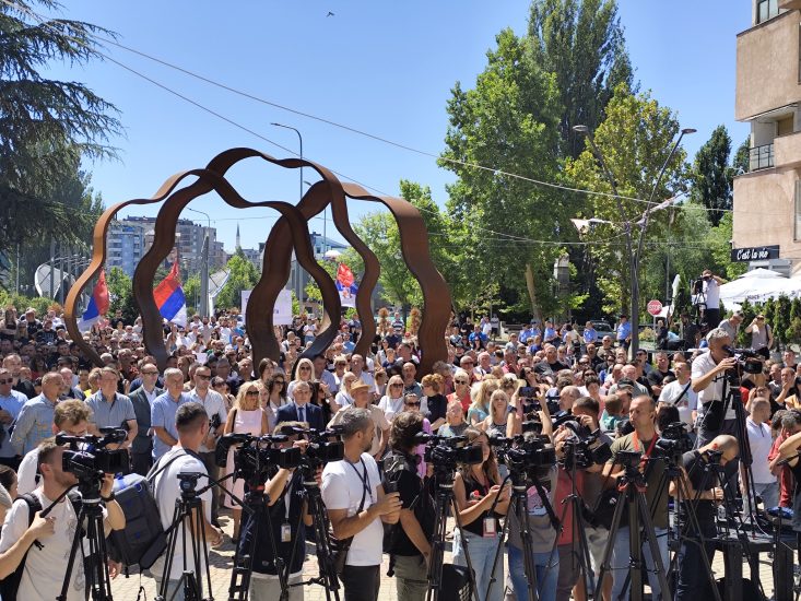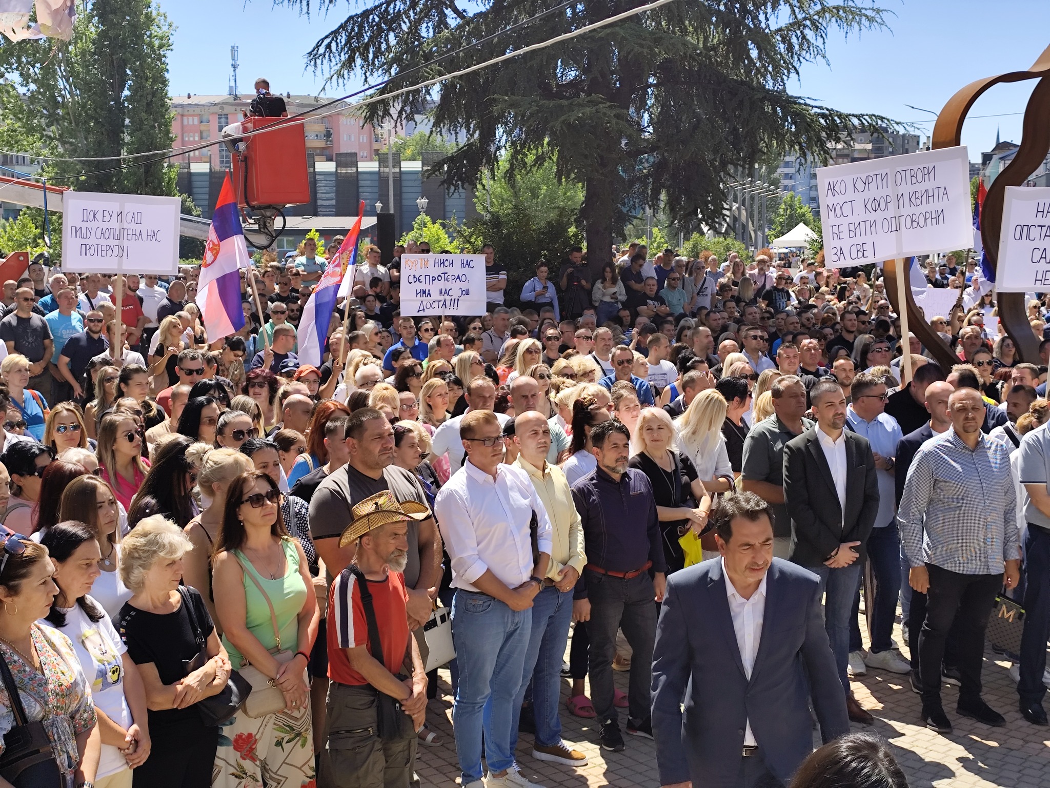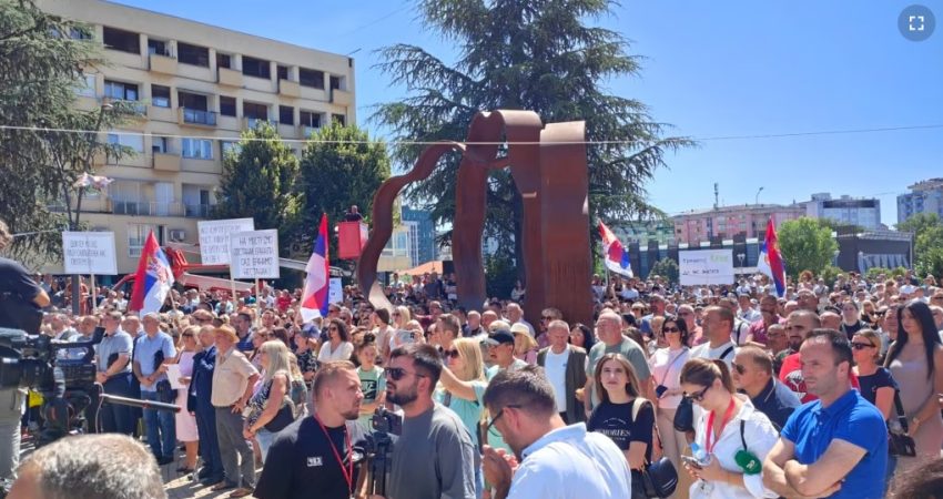Në protestë janë të pranishëm edhe përfaqësues të Listës Serbe, partisë më e madhe e serbëve në Kosovë, e cila ka mbështetjen e Beogradit.