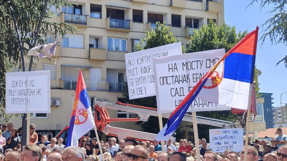 “Në urë ne mbrojtëm mbijetesën, tani mbrojmë zhdukjen”, “Nëse Kurti e hap urën, KFOR-i dhe QUINT-i do të jenë përgjegjës”, “Derisa BE-ja dhe SHBA-ja po shkruajnë deklarata, ne po na dëbojnë”, ishin disa nga mesazhet që shiheshin në pankartat e protestuesve në Mitrovicë të Veriut.