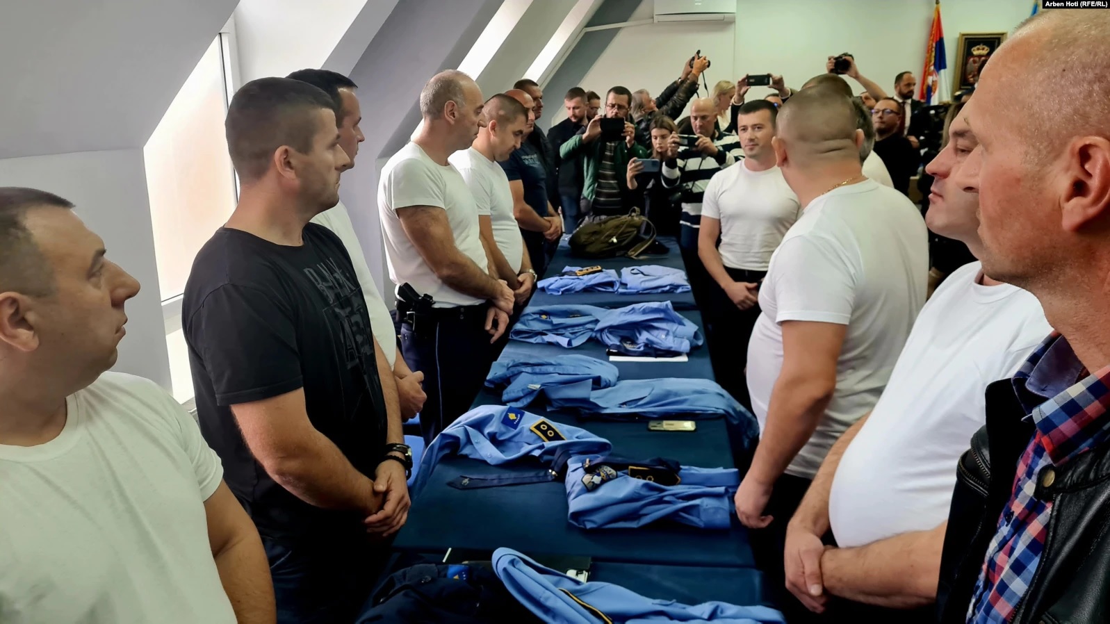 Pjesëtarët e Policisë së Kosovës në veri duke zhveshur uniformat e tyre pas dorëheqjes