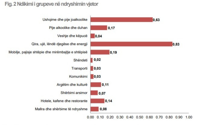 Po ashtu, veshjet/ këpucet dhe qiraja e energjia elektrike u rritën me 1%. Çmimet e ushqimeve u rritën me 0.8% në shtator, ndërsa grupi i transportit shënoi rënie me 0.2%.