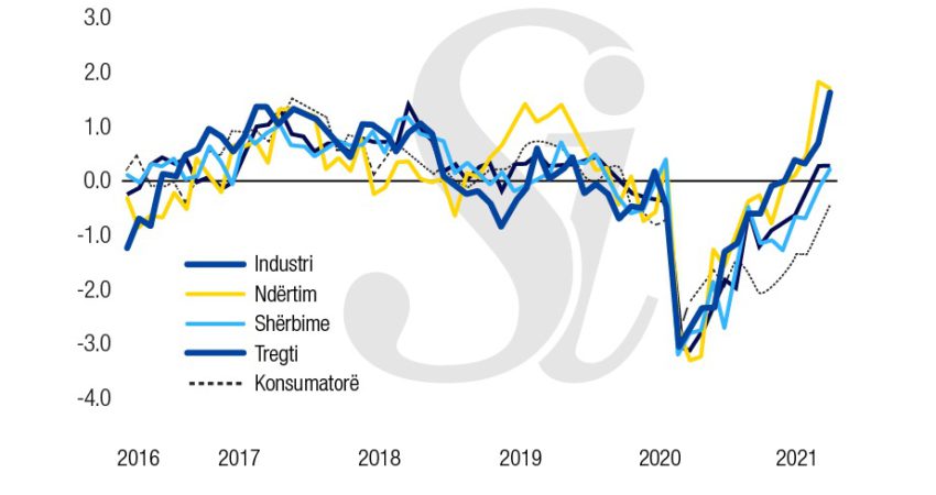 Sipas Bankës së Shqipërisë, Besimi i sektorit të tregtisë dhe shërbimeve u përmirësua ndjeshëm gjatë muajit maj krahasua me muajin prill. Në sektorin e industrisë u përmirësua lehtë, ndërsa në sektorin e ndërtimit shënoi rënie.