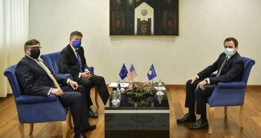 Duke i kërkuar haptazi kryeministrit Albin Kurti që të dëshmojë përkushtim në dialogun që pritet të rinisë së shpejti, Zëvendës ndihmës sekretari amerikan, Mathew Palmer dhe i dërguari i Bashkimit Europian për dialogun, Miroslav Lajçak kanë nisur të hënë një vizitë zyrtare në Kosovë. Mesazhi i SHBA-së dhe BE-së ka qene i qartë: Dialogu rinis së shpejti dhe të gjitha palët në Kosovë duket të jenë të bashkuara në mënyrë që marrëveshja për normalizim të plotë të marrëdhënieve ndërmjet Serbisë dhe Kosovës të arrihet sa më parë.