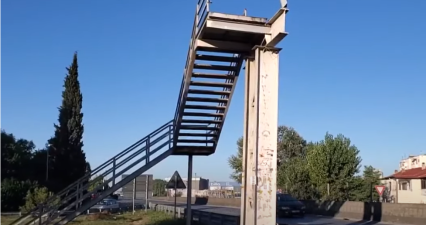 Gazeta Si – ARRSH ka shembur një ditë më parë të gjithë strukturën metalike të një mbikalimi për këmbësorët pranë Sukthit në autostradën Durrës-Tiranë.