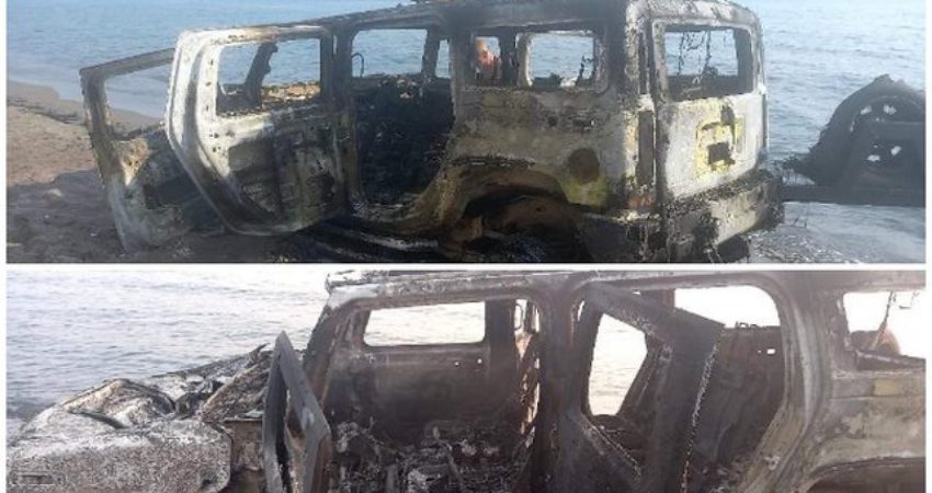 Një automjet tip “Fuoristrade” është gjetur e djegur në breg të detit në zonën e Ranës së Hedhur në Shëngjin. Mjeti është pikasur pasditen e së hënës dhe policia ka nisur hetimet.