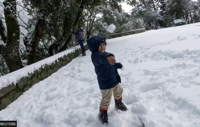 Njerëzit në qytet janë mrekulluar me pamjen e panjohur të një stuhie bore rreth shenjës së Hollivudit në malin Lee.