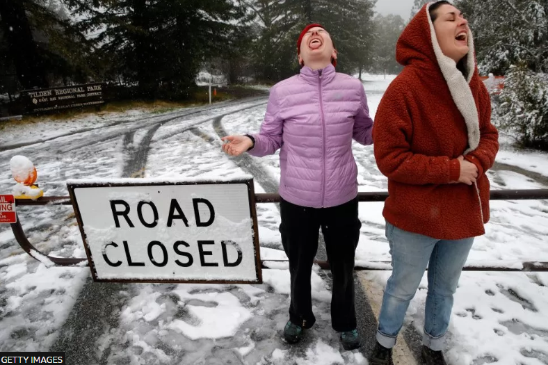 Dëbora ka përfshirë Los Anxhelosin, duke mbuluar dhe shenjën ikonike të Hollivudit, një pamje e rrallë. Gjithashtu, San Francisko ka shënuar një temperaturë të ulët rekord, në 4 gradë Celsius, temperaturë që nuk është parë prej 132 vitesh.