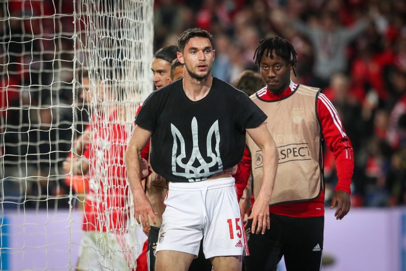Roman Jaremçuk shënoi golin e barazimit për Benfikën në ndeshjen ndaj Ajaksit në Ligën e Kampionëve, që përfundoi 2-2. Sulmuesi ukrainas festoi me një mesazh të qartë për vendin e tij, ku tashmë Rusia ka filluar pushtimin.