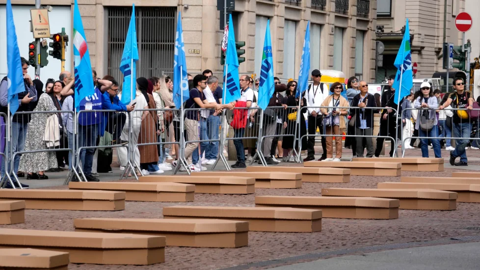 Nga Gazeta ‘Si’-Arkivolet bosh mbushën një nga sheshet më të famshme të Milanos në një protestë të organizuar nga sindikata e dytë më e madhe e Italisë për të rritur ndërgjegjësimin për vdekjet në vendin e punës.