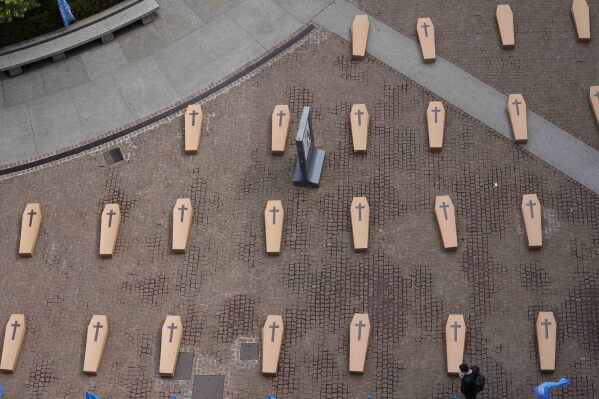 Një tabelë në qendër të sheshit tregonte numrin e punëtorëve që kanë vdekur në vendin e punës që nga viti 2018, duke arritur kulmin në 1.709 në vitin 2020, gjatë pandemisë Covid