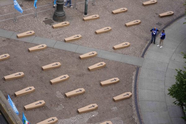 Sheshi i mbushur me arkivole/ Protesta simbolike në Milano për humbjen e jetës në vendin e punës