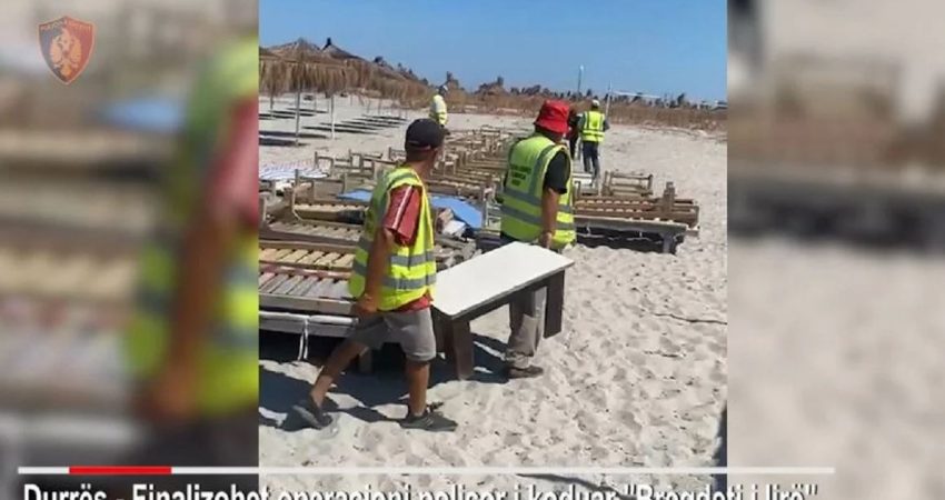 Policia ka liruar hapësirën publike në bregdetin e Porto Romanos, duke hequr 400 komplete me çadra dhe shezlonge që ishin vendosur pa lejen e autoriteteve përkatëse.