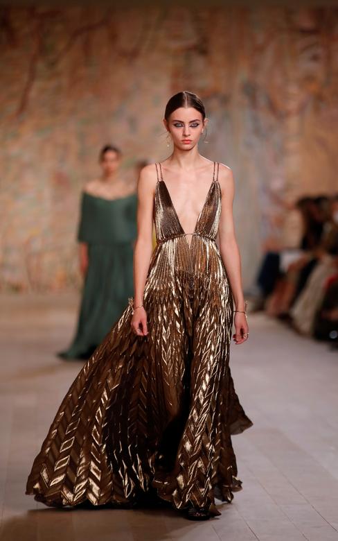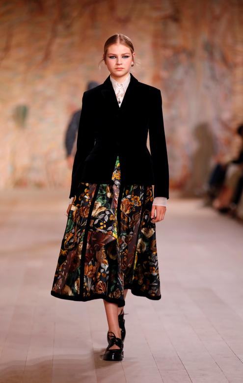 Modelet të cilat tregojnë krijimet e reja të stilistes Maria Grazia Chiuri si pjesë e shfaqjes së saj të koleksionit Haute Couture Vjeshtë / Dimër 2021-2022 për Dior në Paris, Francë, 5 korrik 2021/ REUTERS/