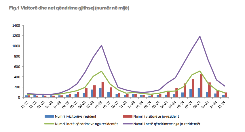 Në total janë më shumë se 300 mijë netë qëndrime, nga të cilat 224.2 mijë i përkasin vizitorëve të huaj.
