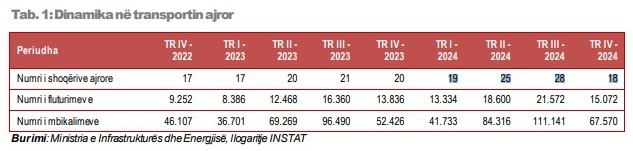 INSTAT raporton se në tremujorin e fundit të 2024-s në Shqipëri operonin vetëm 18 linja ajrore, nga 28 që ishin gjatë sezonit veror. Vetëm 1 nga këto ishte shqiptare.