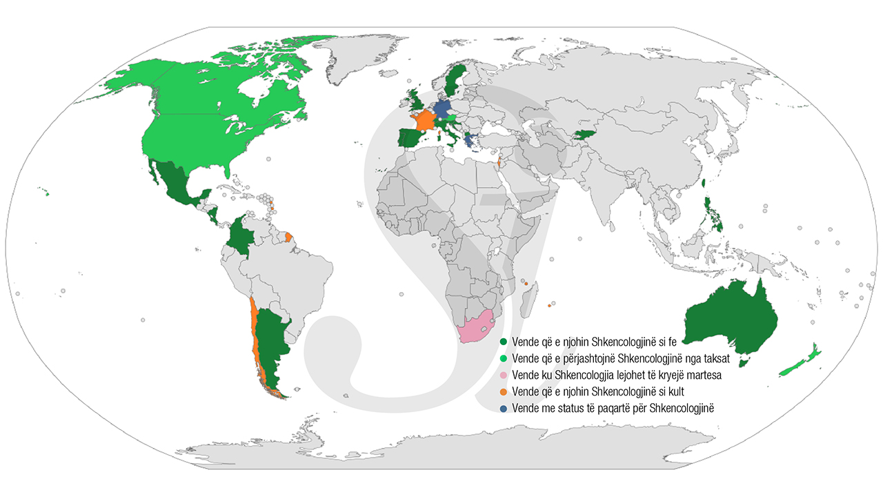 Zyrtarisht, Shkencologjia nuk ka një degë të hapur në Shqipëri, por mendohet se herë pas here ka ndërmarrë misione rekrutimi ndjekësish duke shfrytëzuar degën e saj të Maqedonisë së Veriut, e regjistruar në gjykatën e Shkupit në vitin 2017.