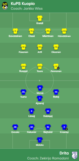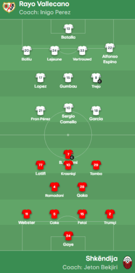 Pas pak minutave në “Estadio de Vallecas” në Madrid (Shkëndija) dhe në “Tammela Stadion” në Tampere (Drita), miqtë do të zbresin përballë vendasve me këto formacione: