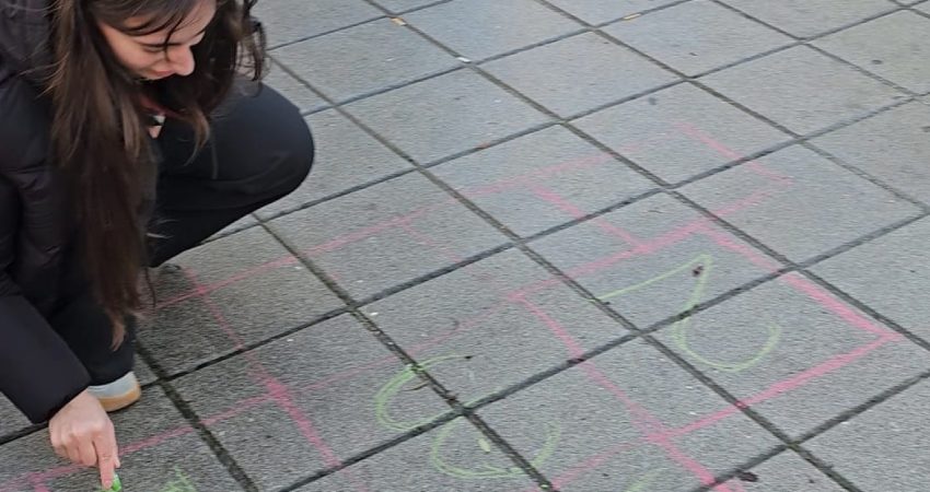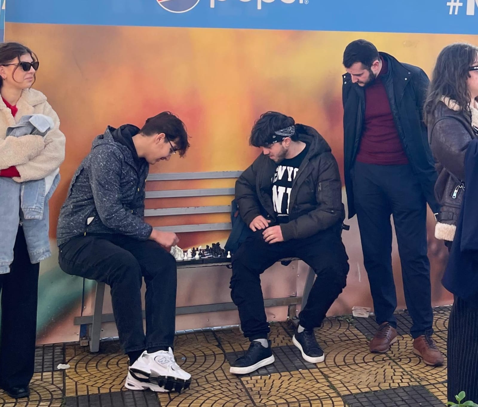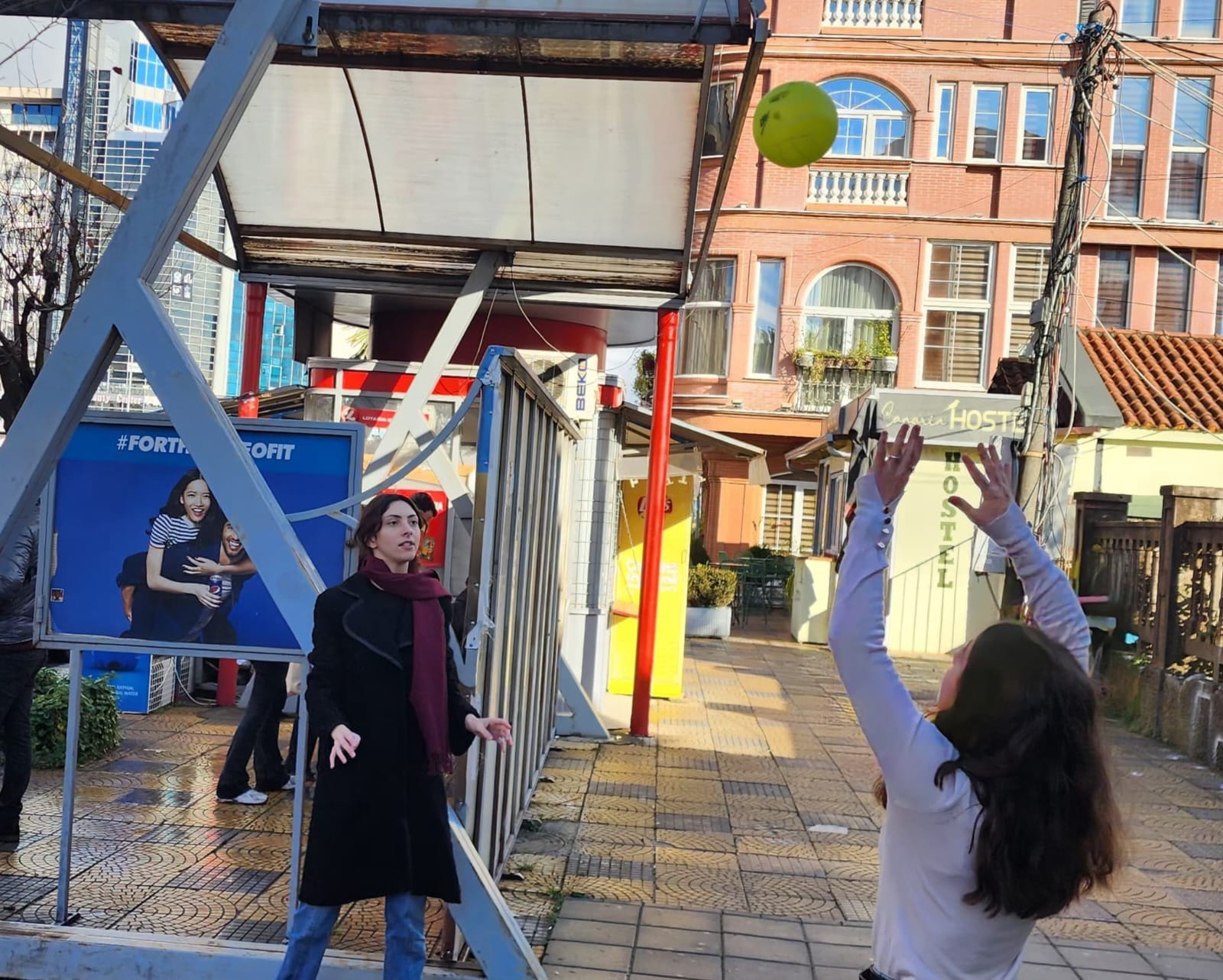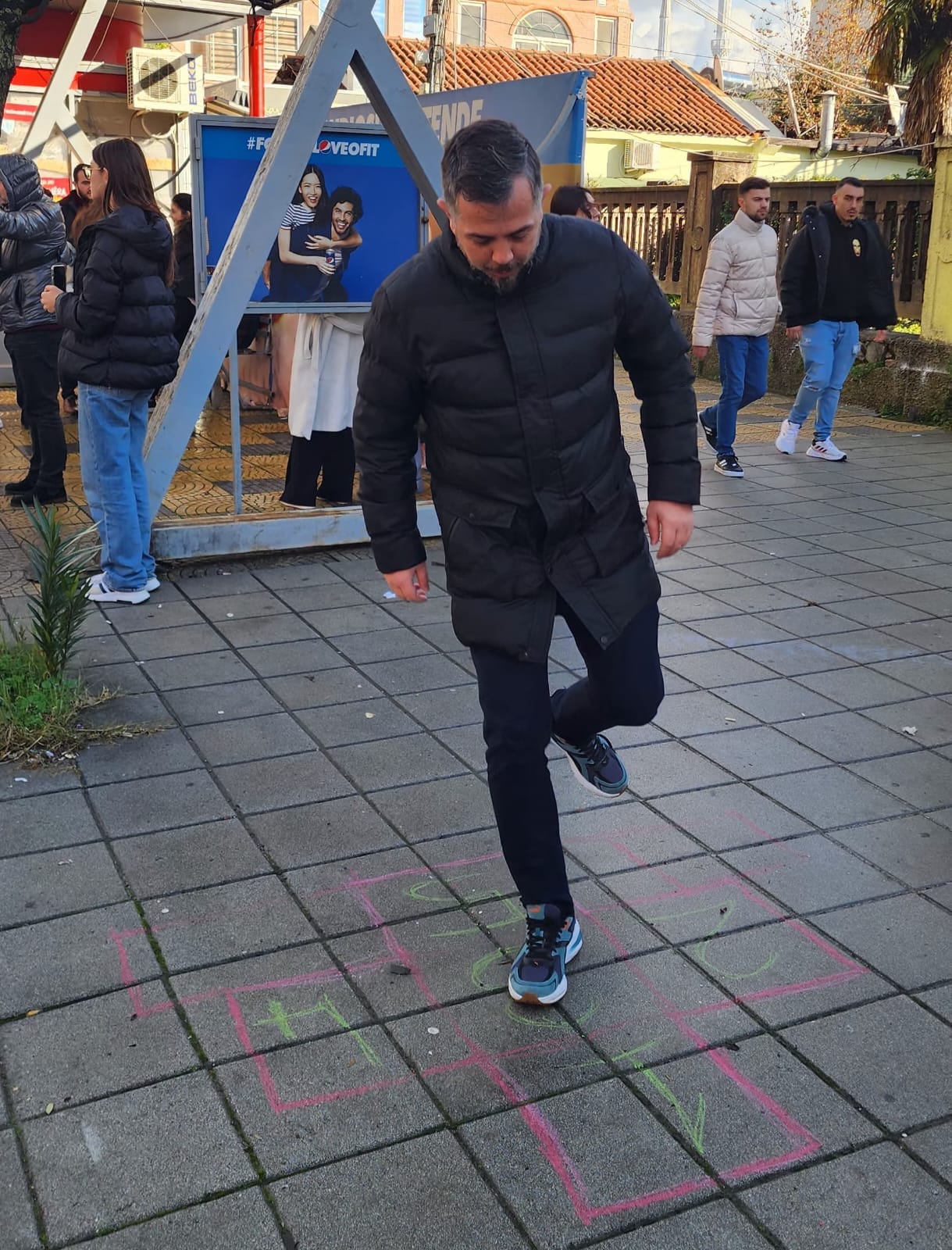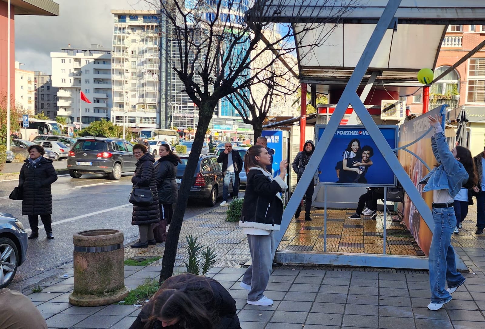Përpara stacionit të urbanit në Shkodër, të rinjtë kanë zgjedhur të luajnë derisa të vijë autobusi. Jo sepse koha tepron, por për të ironizuar një problem: vonesat e autobusëve urbanë dhe mungesën e linjave urbane të tjera në qytet.