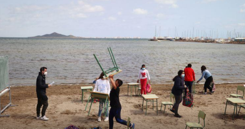 A duket si ëndërr ta kesh shkollën në plazh? Pas një viti mësimi online, një shkollë në rajonin spanjoll të Murcia po bën pikërisht këtë, duke u përpjekur të ndërthurë ajrin e pastër dhe një mënyrë të re të mësimdhënies.