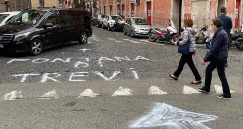 Disa persona në Romë duket se kanë gjetur një mënyrë inovative (gjithsesi të jashtëligjshme) për të tërhequr turistë. Jo pak njerëz janë habitur sot në mëngjes kur, shumë pranë qendrës, kanë vërejtur një mbishkrim në asfalt, i cili jepte indikacione të gabuara për të shkuar te Shatërvani Trevi (Fontana di Trevi). Kreu i Këshillit për Tregti dhe Turizëm të Romës, Carlo Cafarotti, e ka konsideruar këtë si një ofendim për qytetin.