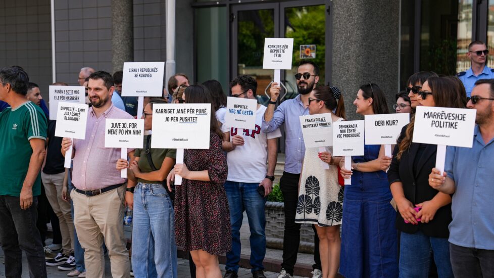Nga Gazeta ‘Si’- Pjesëtarë të organizatave të ndryshme të shoqërisë civile protestuan në hyrje të Kuvendit të Kosovës të mërkurën, teksa deputetët e zgjedhur u mblodhën për të tentuar për herë të 37-të ta bëjnë Kuvendin e ri.