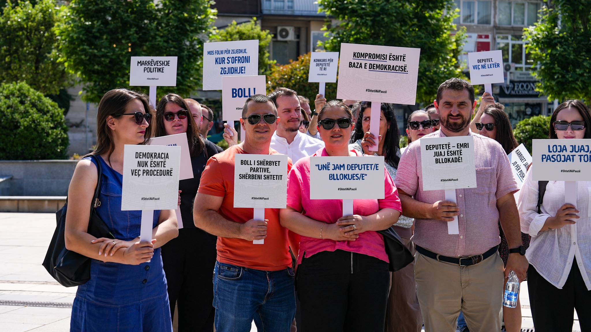 Nga Gazeta ‘Si’- Pjesëtarë të organizatave të ndryshme të shoqërisë civile protestuan në hyrje të Kuvendit të Kosovës të mërkurën, teksa deputetët e zgjedhur u mblodhën për të tentuar për herë të 37-të ta bëjnë Kuvendin e ri.