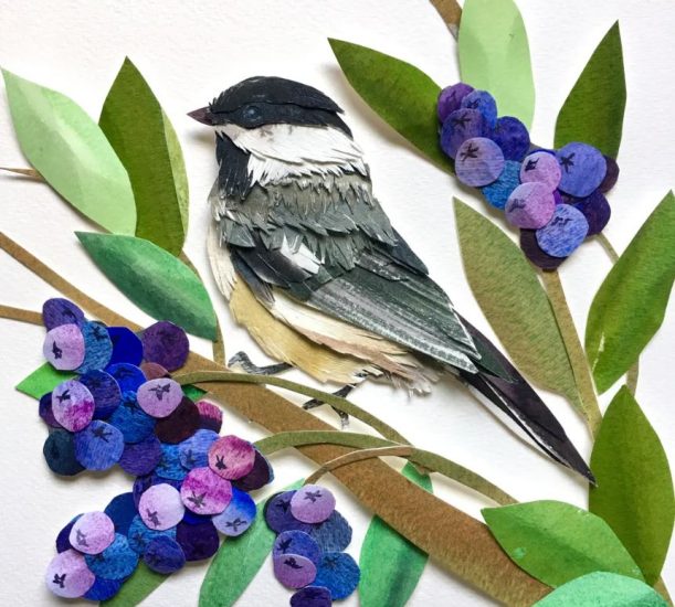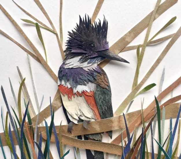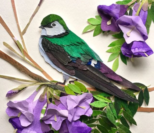 Sarah Suplina ka qenë prej kohësh e magjepsur me zogjtë që fluturojnë në oborrin e saj në Konektikat, Britani. Artistja vendosi t’i bënte të përjetshme këto gjallës, duke pikturuar letër të trashë me bojëra uji, duke i prerë atë me gërshërë në forma të ndryshe, e më pas duke i ngjitur të gjitha bashkë.