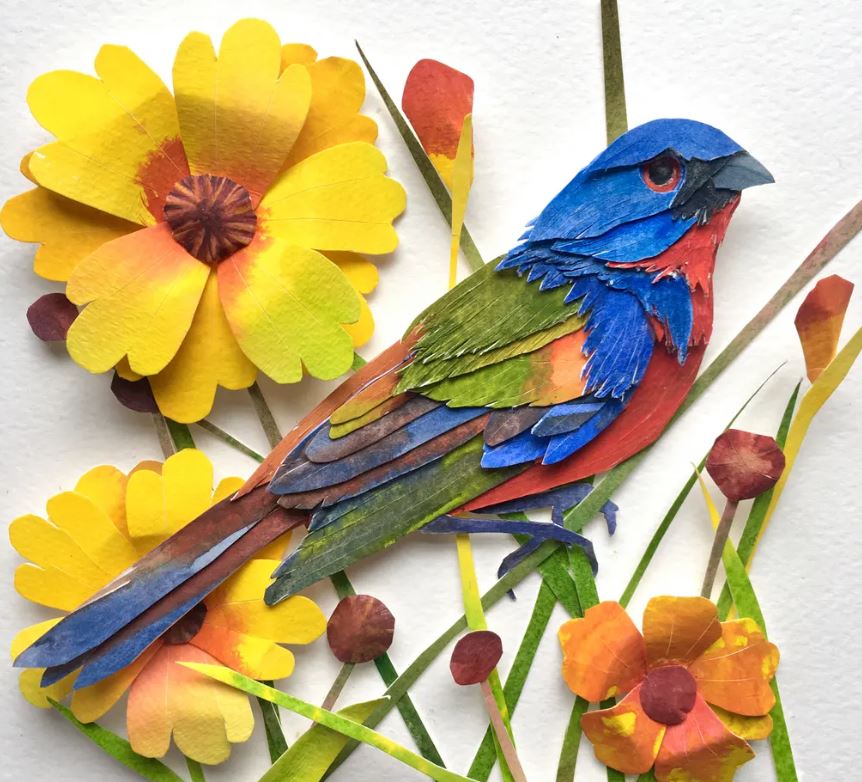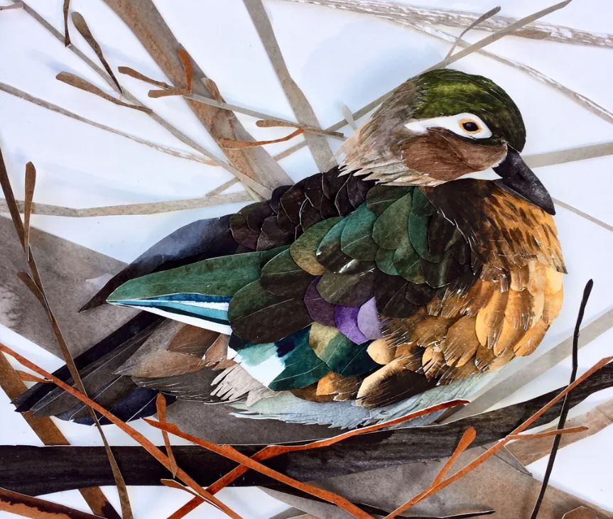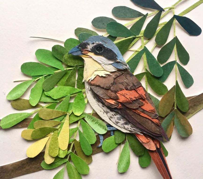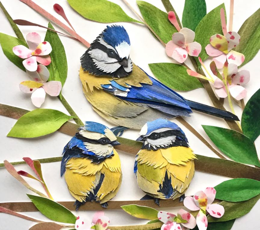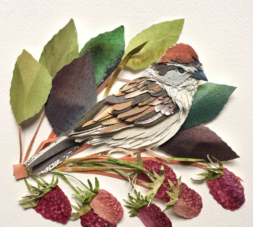 Sarah Suplina ka qenë prej kohësh e magjepsur me zogjtë që fluturojnë në oborrin e saj në Konektikat, Britani. Artistja vendosi t’i bënte të përjetshme këto gjallës, duke pikturuar letër të trashë me bojëra uji, duke i prerë atë me gërshërë në forma të ndryshe, e më pas duke i ngjitur të gjitha bashkë.