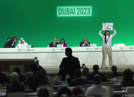 Samiti i klimës COP28 u ndërpre nga një aktiviste 12-vjeçare indiane e cila zgjodhi këtë mënyrë për të protestuar. Me një pankartë ku shkruhej “I japim fund karburantit fosil, shpëtoni planetin tonë dhe të ardhmen tonë” Licypriya Kangujam doli para të gjithëve duke ndërprerë fjalën e të ftuarve në panel, përpara se të nxirrej jashtë nga rojet.