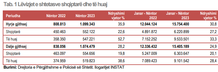 Nga Gazeta ‘SI’ – Hyrje-daljet në Shqipëri raportohen të larta edhe për muajin nëntor me një rritje të ndjeshme nga një vit më parë.