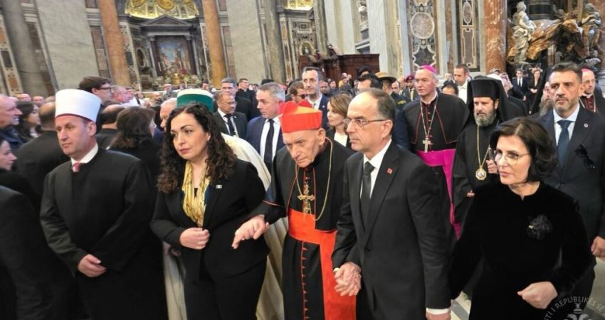 Gazeta Si – Në një ceremoni ku marrin pjesë drejtues shtetesh, klerikë dhe besimtarë nga e gjithë bota, Shqipëria dhe Kosova kanë zhvilluar homazhe të përbashkëta pranë trupit të Papa Françeskut në Bazilikën e Shën Pjetrit në Vatikan pasditen e kësaj të premteje.