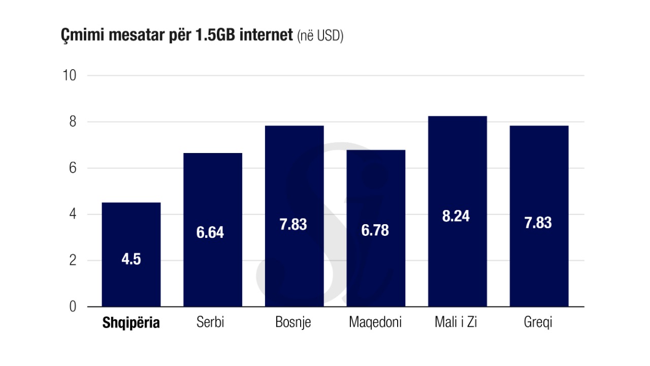 Autorët e këtij studimi thonë se shpenzimet për internetin mobil në Shqipëri shkojnë në 1.03 për qind e të ardhurave kombëtare bruto, në Serbi 1.14 për qind, Mal të Zi 0.89 për qind, Maqedoninë e Veriut 1.68 për qind dhe Bosnje 1.33 për qind.