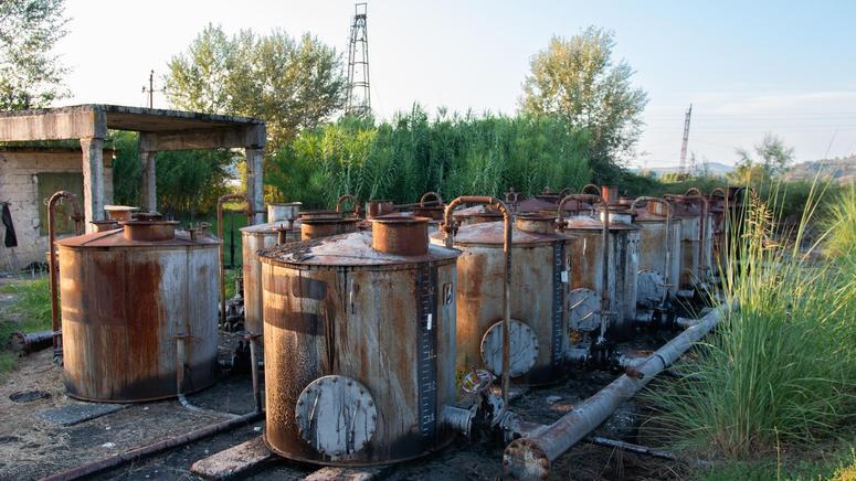 Objektet e braktisura të naftës në Kuçovë, Shqipëri.
