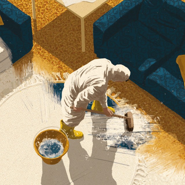 Paqartësia është një shfaqje e ankthit tonë, me sa duket se mund të jemi në gjendje të zbulojmë virusin që del përpara për sa kohë që i mbajmë sipërfaqet tona të pastra. Ndërsa qëndrojmë në shtëpi në pritje të vaksinës, shtëpitë tona janë të mbushura me frikë. Në timen, kjo është më e dukshme nga dera, ku pirgje maskash mjekësore rrinë në një tabaka, që mund të ketë mbajtur një pasaportë ose buzëkuq në ditë më të lumtura.