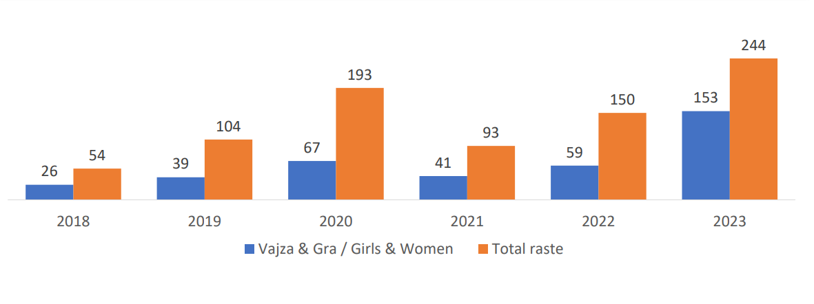 Në 2023, janë 153 vajza dhe gra që kanë raportuar, në krahasim me 59 në 2022 dhe 41 në 2021.