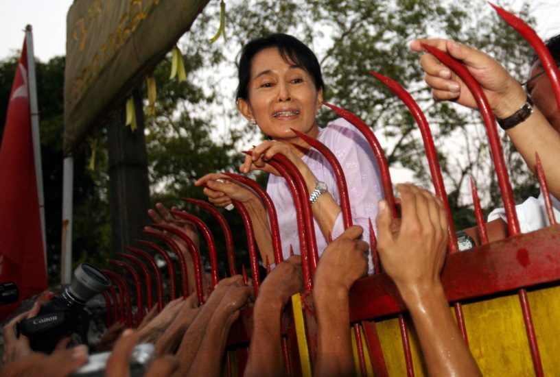 E armatosur me asgjë më shumë se një koleksion çmimesh ndërkombëtare, ajo kishte vendosur lule të freskëta në flokët e saj, e ulur me qëndrim të patëmetë dhe i premtoi botës dy gjëra: ajo do të bënte të mundur që të burgosurit politikë të Mianmarit (Burmës) do të dilnin të lirë dhe do t’i jepte fund konfliktit etnik që ka mbajtur kufijtë e vendit në luftë, për shtatë dekada.
