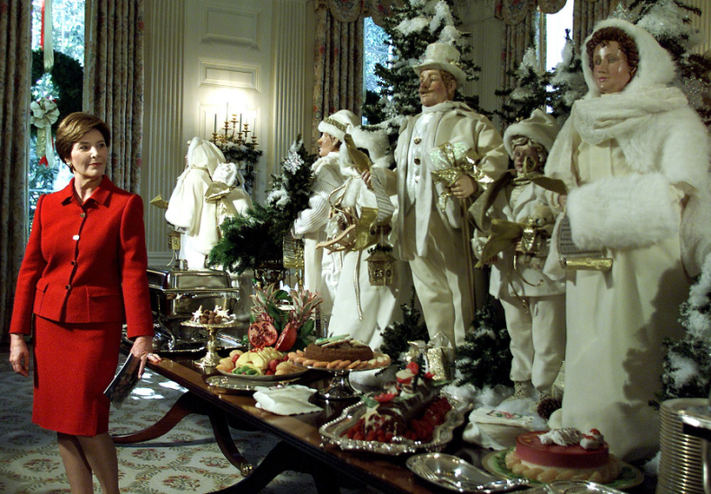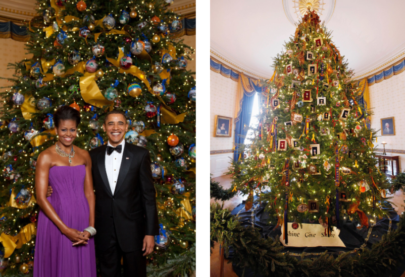 Barbara Bush e zbukuroi pemën e Krishtlindjes të Shtëpisë së Bardhë me qindra zambakë të bardhë. Michelle Obama shtoi homazhe për Qenin e Parë, Bo, në dekorin e saj festiv. Melania Trump e mbuloi gjithë vendin me zbukurime të bardha. Këtu janë disa imazhe se si është transformuar Shtëpia e Bardhë ndër vite në sezonin e festave.