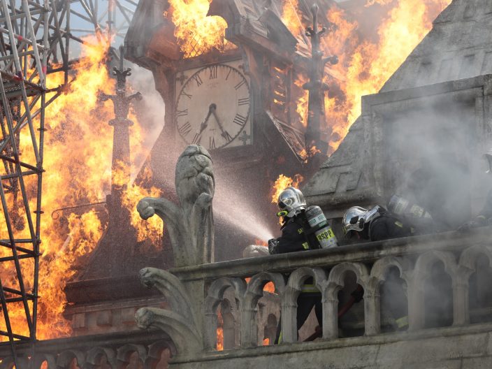 “Rrëfimi i filmit zhvillohet gjatë 24 orëve para dhe pas shpërthimit të zjarrit në katedralen e Parisit, duke përfunduar në agimin e 16 prillit”, vijoi regjisori. “Ai fokusohet në urgjencën dhe te njerëzit e zakonshëm që e menaxhuan atë. Ai nuk harron përpjekjet e bëra për të sjellë në vend personelin dhe pajisjet e përshtatshme për shuarjen e flakëve, mes trafikut të orës së pikut të Parisit dhe turmave të spektatorëve që nxituan. Më pas vazhdohet me luftën që luftuan zjarrfikësit me flakë gjithnjë e më monstruoze e më mbështjellëse, duke u bërë thirrje vetëm përvojës dhe guximit të tyre”.