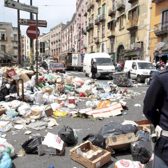 Grupi mafioz Camorra thuhet se ka kontrolluar menaxhimin e mbeturinave në qytetin e Napolit që nga fillimi i viteve 1980. Qyteti italian fitoi vëmendjen në të gjithë botën në vitin 2008, kur mbeturinat e pa mbledhura u grumbulluan në rrugët e qytetit për më shumë se dy javë sepse mafia mbylli landfillet. Grupet mafioze të vendit fqinj gjithashtu kanë hedhur në mënyrë të paligjshme mbetje toksike, industriale në Napoli dhe pjesë të tjera të vendit.